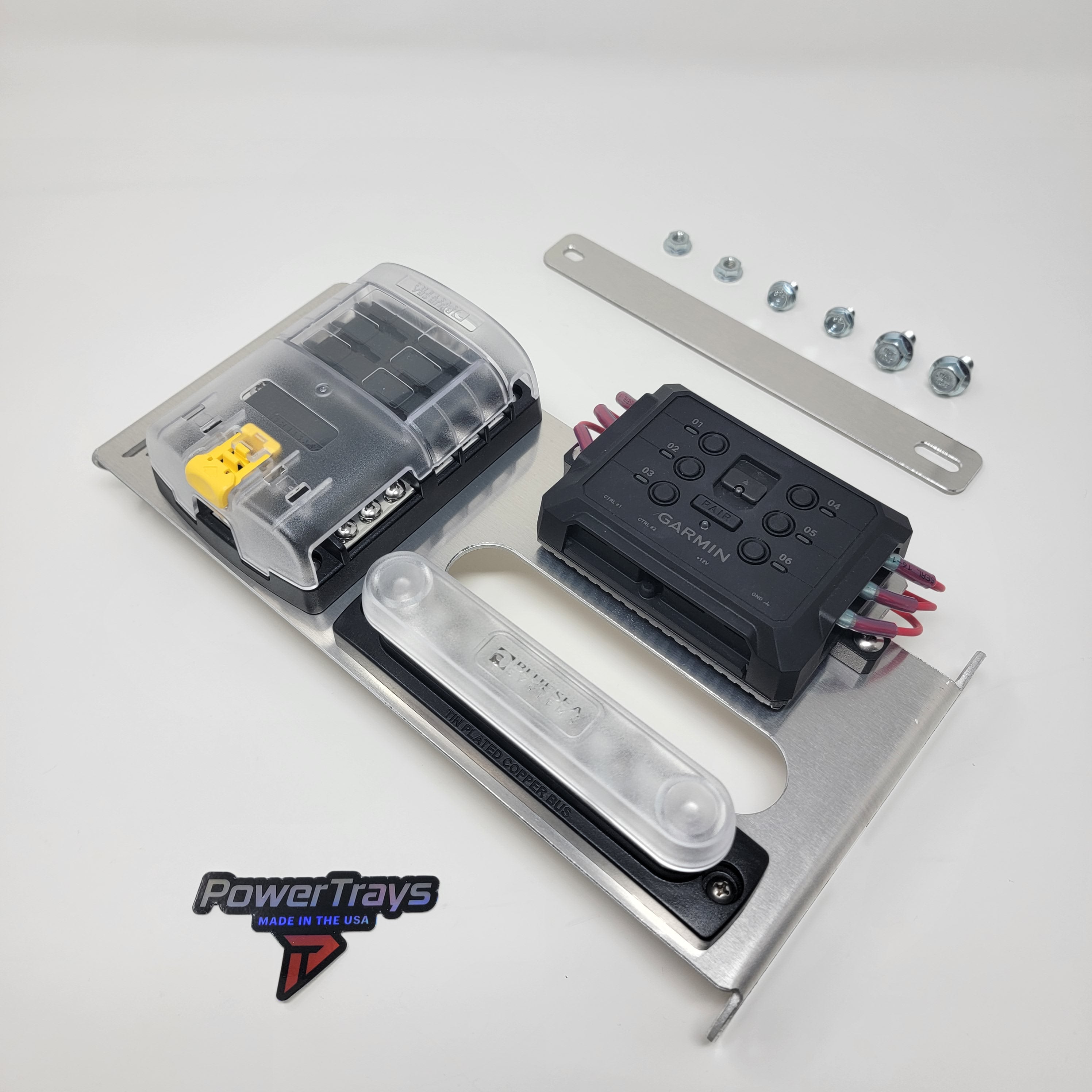 This option is the same as the Original PowerSwitch PowerTray seen above, minus the fuse block. Its a simple, compact solution to mount your PowerSitch system and busbar so you can keep your wiring clean and organized.