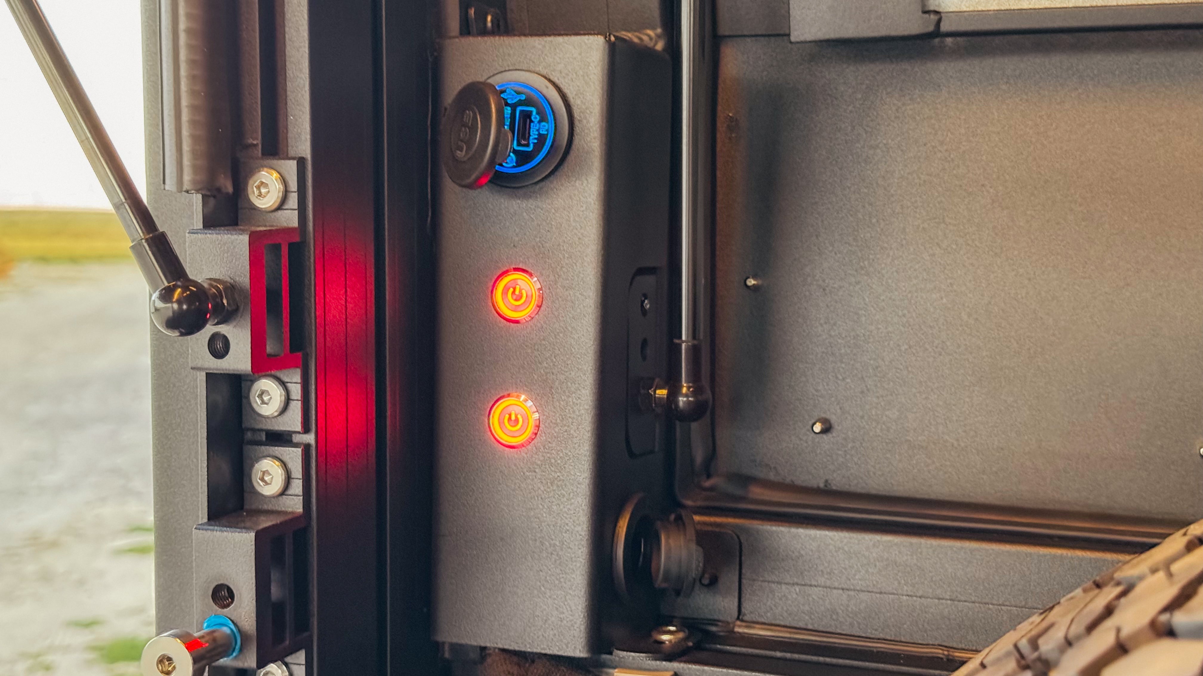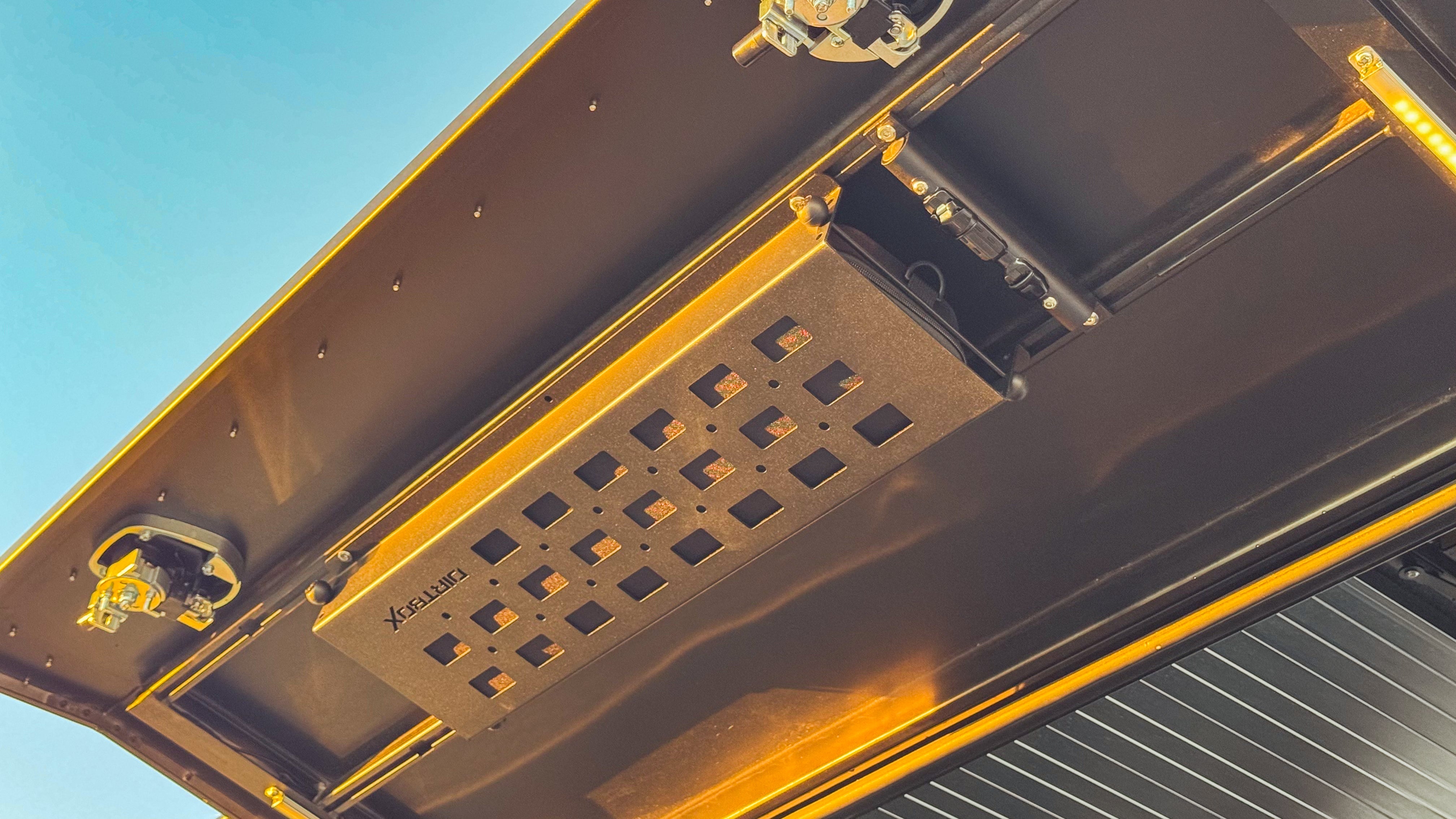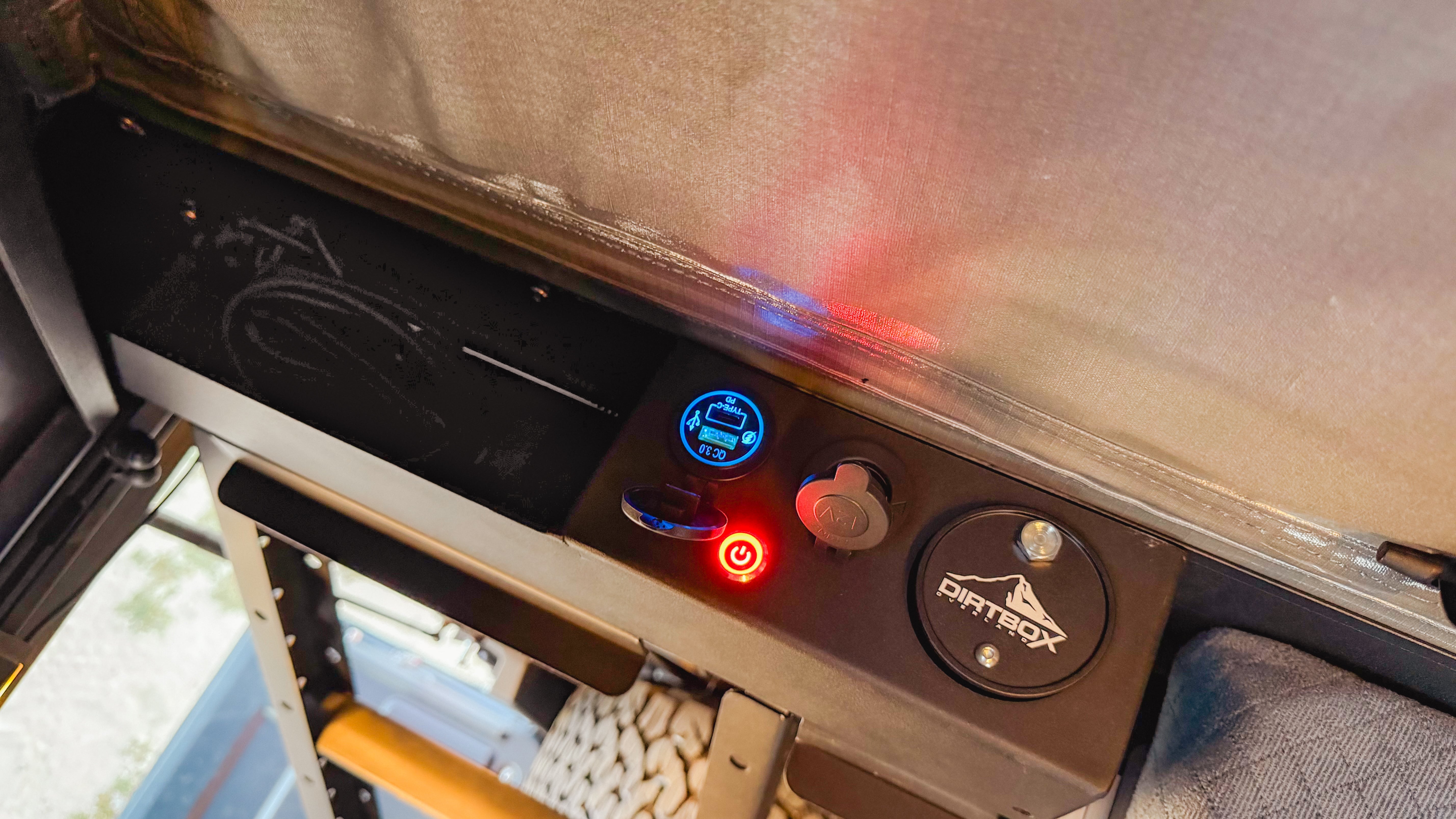 USB-A, USB-C ports at the sleeping platform and truck bed floor