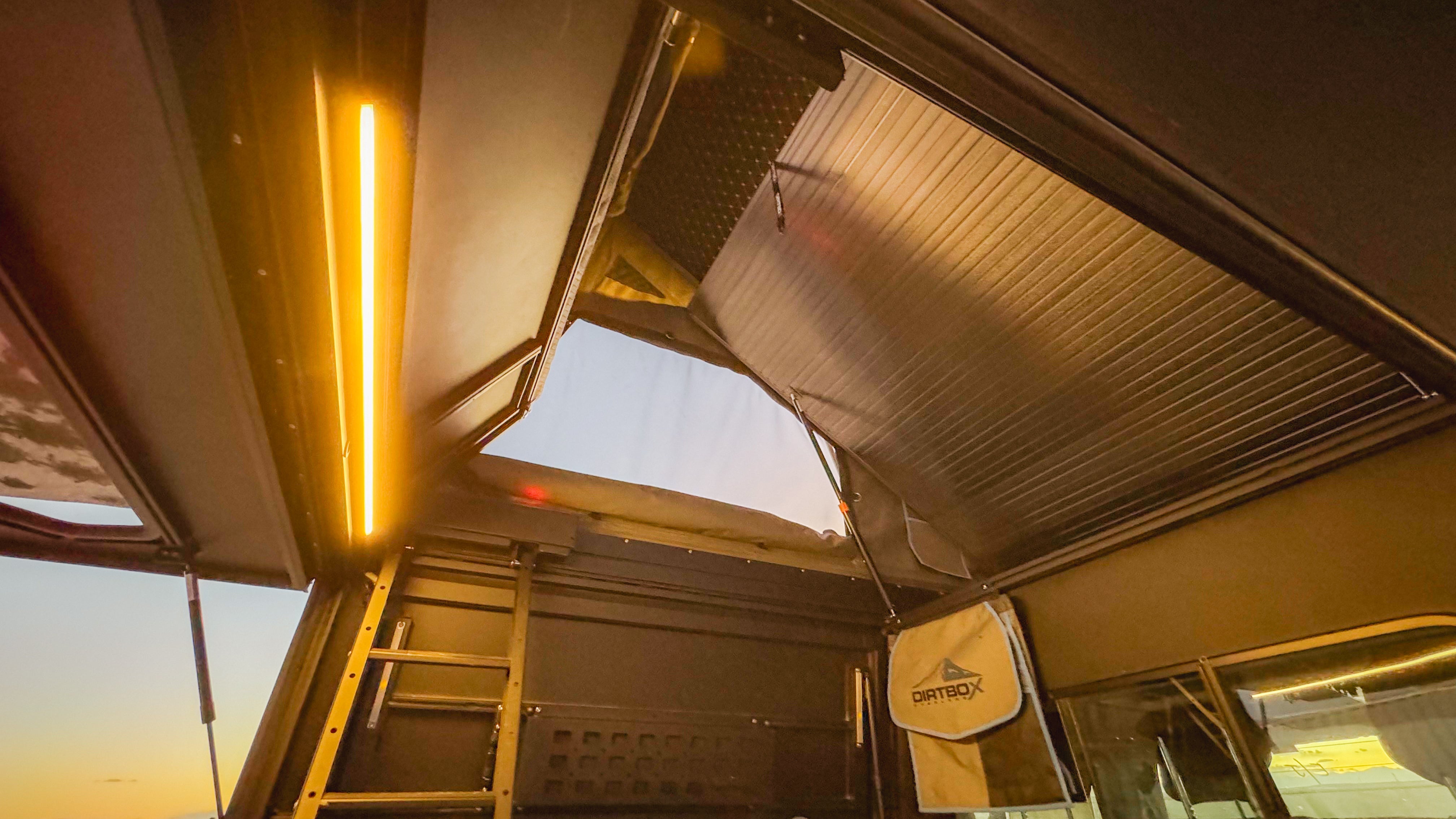 This isn’t a flimsy topper or a showpiece shell. The Dirtbox Canopy Camper is crafted from reinforced aluminum extrusions, weather-sealed and structurally sound, designed to flex with your truck and withstand the real-world punishment of off-road travel.